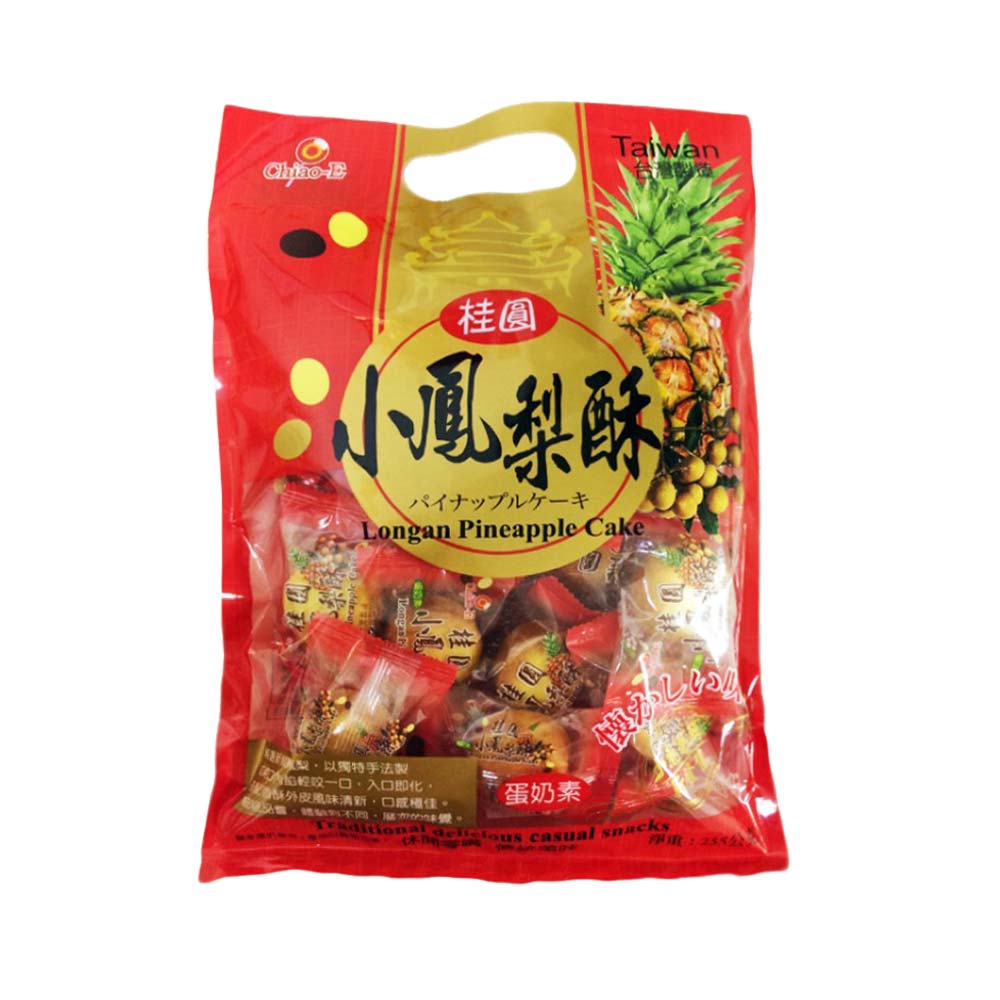 ■ 成分:桂圓鳳梨醬(麥芽糖、蘿蔔纖維、砂糖、蕃薯、桂圓肉、棕櫚油、鳳梨、檸檬酸、香料、鹽)、小麥粉、植物酥油(棕櫚油)、雞蛋、砂糖、奶粉、鹽、B-胡蘿蔔素(著色劑)、香料、碳酸氫鈉(膨脹劑)、己二烯酸(防腐劑)。 ■ 過敏原資訊: 此產品含有麩質的穀物、蛋類、奶類、及其製品,不適合對其過敏體質者食用。 ■ 保存方法: ■ 淨重:225g/包 ■ 原產地:台灣 ■ 保存期限:12個月 ■ 葷素別:蛋奶素 ■ 國際條碼:4718037135317 ■ 營養標示: 每一份量15公克 本包裝含17份 每份(每100公克) 熱量64大卡(427.3大卡) 蛋白質0.6公克(4.0公克) 脂肪2.4公克(16.1公克) .飽和脂肪1.3公克(8.5公克) .反式脂肪0.0公克(0.0公克) 碳水化合物10公克(66.6公克) .糖1.1公克(6.8公克) 鈉21毫克(140毫克) (營養標示數據若與包裝上略有差異時,以實際包裝上標示為準)發票寄送