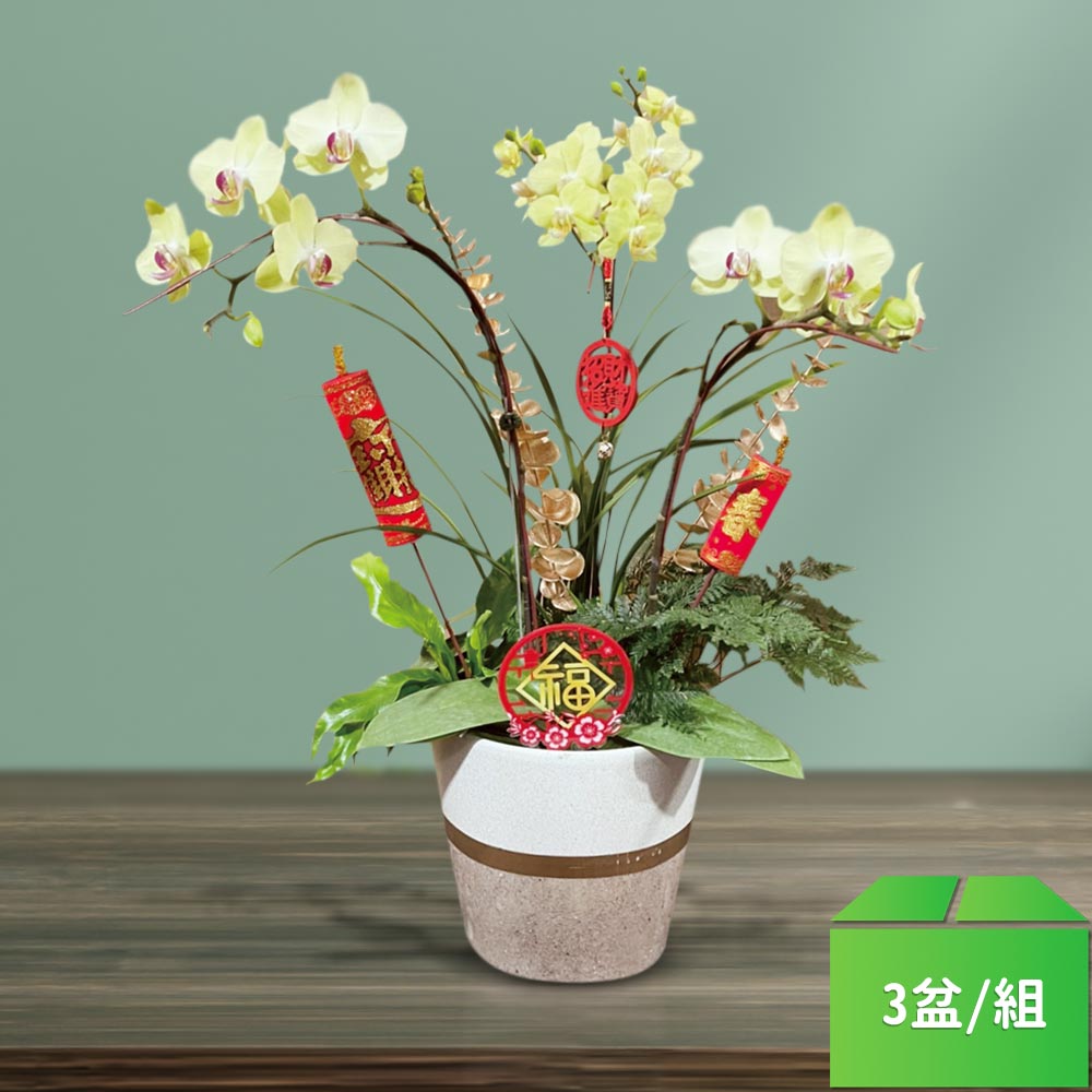 精選蘭花組盆004-黃色蝴蝶蘭3株-3盆/組